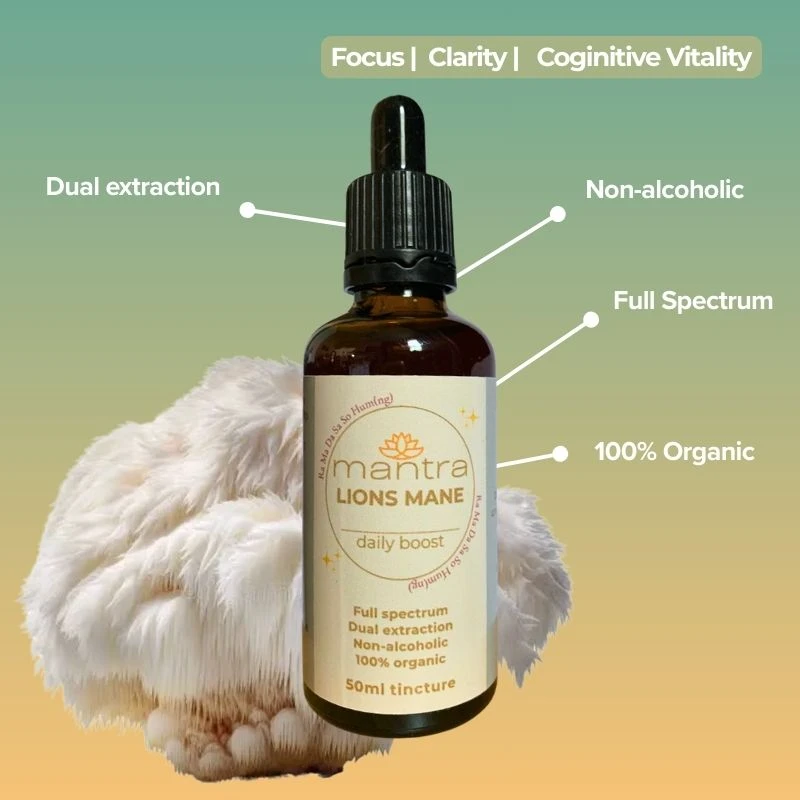 At Mantra, Lion’s Mane is offered as a steady companion for modern cognitive load. It is designed for people who think deeply, study, write, create or simply want to feel more present with their thoughts over time.